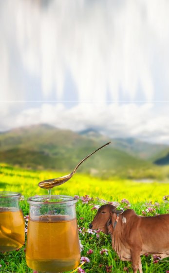 Our Pure Cow Ghee is made using the traditional Bilona method, where curd is hand-churned to extract butter and slowly simmered to obtain golden ghee rich in aroma, flavor, and nutrients.
